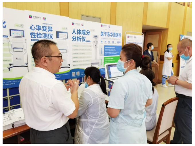武留信教授到东华原展位参观指导时指出,健康管理是一个大市场,东华原医疗要多多研究行业新需求新技术,加强在学术课题方面的合作探索力度。