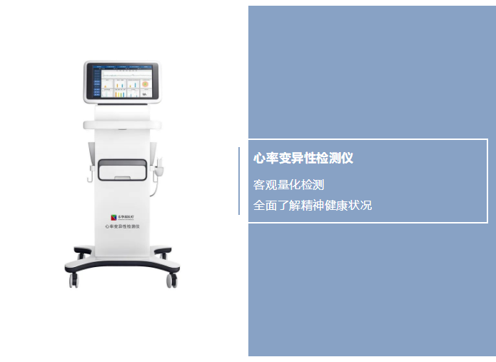 东华原面对当前精神健康筛查过程中的种种困难,从客观量化检测出发,创新性地推出了心率变异性检测仪(精神压力分析仪)。心率变异性检测仪采用心率变异性(HRV)理论,捕捉身体的真实信号,通过测试瞬时心动周期的微小变化,判断交感神经、副交感神经的兴奋度、活性、平衡度,从而评估分析受测者的身体疲劳、抗压能力、压力指数、自主神经系统活性与平衡性等身心总体状态,并可判断心血管循环功能、血管状态。
