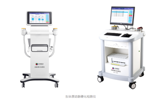 东华原动脉硬化检测仪用于全身动脉硬化和动脉粥样硬化的早期检测和血管疾病风险的检测与评估,采用示波法、参数分析法及弹性腔理论法,结合脉搏波波形图、PWV与年龄趋势分析示意图、四肢血压图、ABI分析示意图、血管顺应性及弹性评估图,STI心功能评估图等多个信息,为动脉硬化诊断提供多项检测指标。