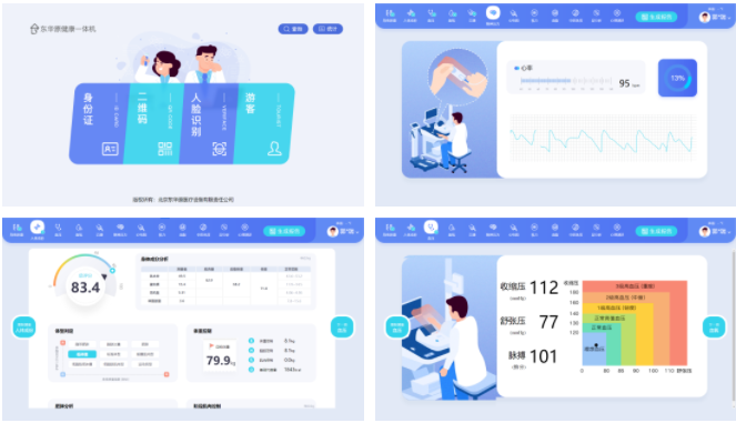 东华原健康管理一体机硬件、软件均为自主研发,开放性设计,拓展性强。可拓展结合人体成分分析仪、超声波身高体重测量仪等设备。