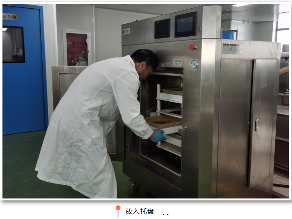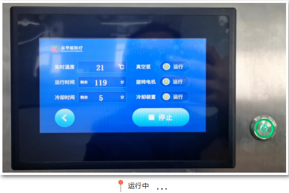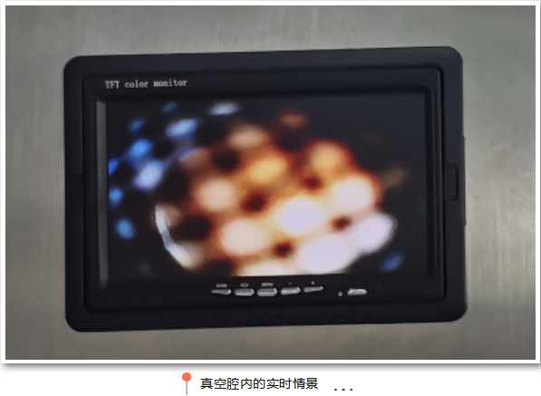 微波发生器开始工作,对中药液内的水分进行加热蒸发,产生的水蒸气被真空泵抽走,在监控屏画面上可以看到真空腔内的实时情景;