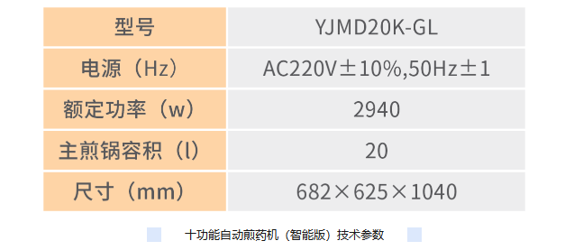 十功能自动煎药机(智能版)结合现代触摸与微电脑智能控制技术,拥有8寸超大液晶触摸屏,能够自动开关盖,极大地节省了人工成本,并提高了操作安全性。同时,该产品增加了报警指示灯和无线天线预留位置,可以提高产品的智能化程度和可靠性,确保机器的稳定性和安全性。该产品不仅具有实用性和高效性,也注重产品的外观设计和功能创新,满足用户多种需求。