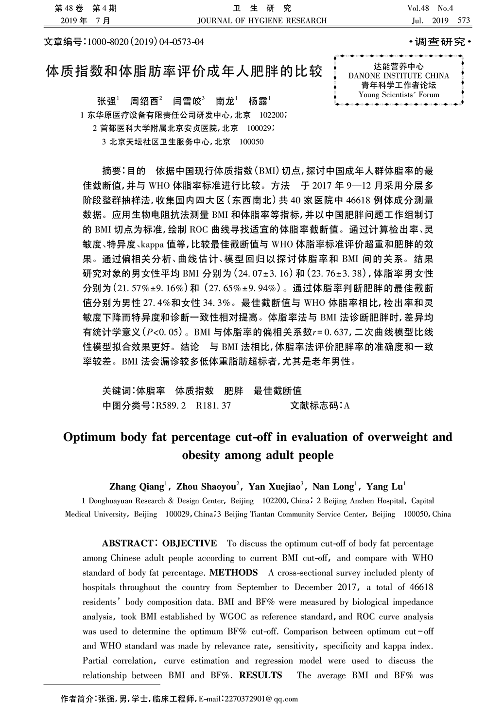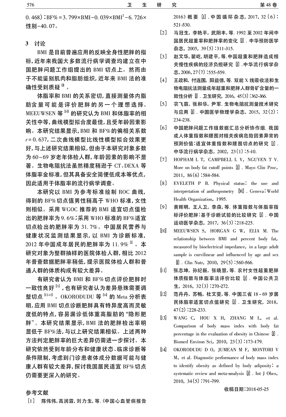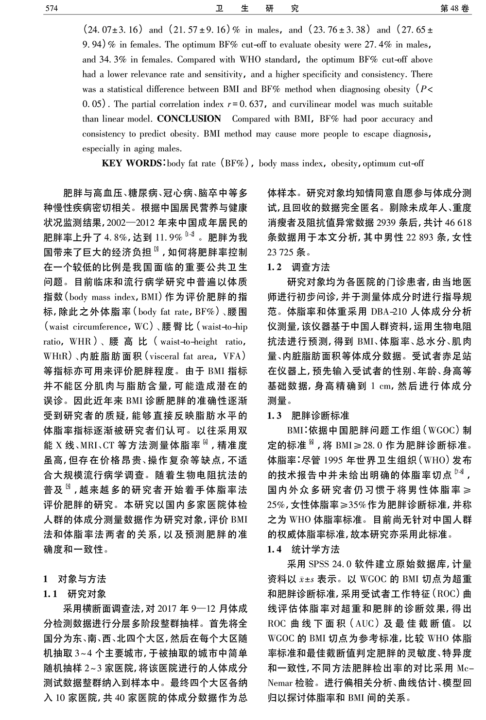 生物电阻抗法和定量计算机体层扫描法测量体检人群的内脏脂肪面积的对比研究