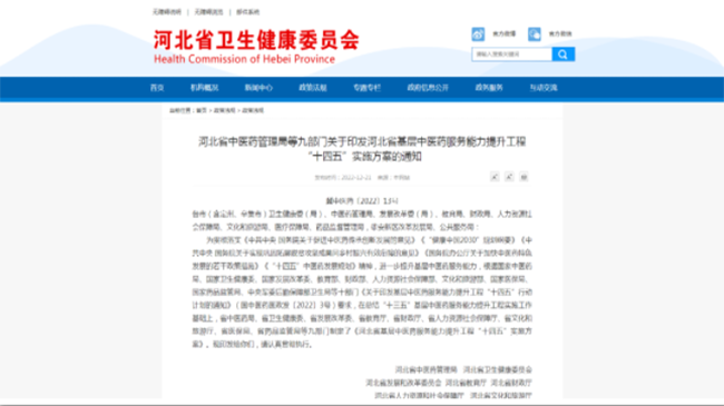 河北省基层中医药服务能力提升工程“十四五”实施方案