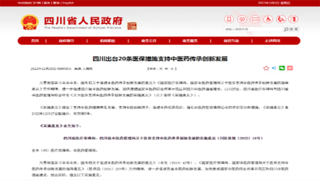 东华原前瞻 | 四川:20条医保措施支持中医药传承创新发展