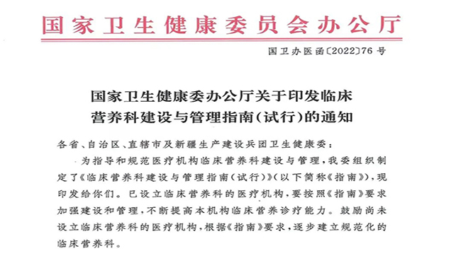 国家卫健委发布《临床营养科建设与管理指南》通知