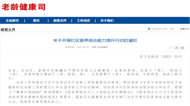 老龄健康司:关于开展社区医养结合能力提升行动的通知