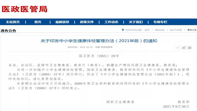 健康前沿 | 2021版中小学生健康体检管理办法发布