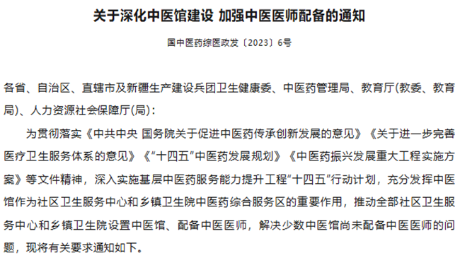 东华原前瞻|关于深化中医馆建设 加强中医医师配备的通知