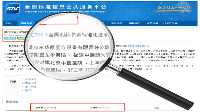 喜报!东华原参与起草的《中药饮片自动调剂系统技术规范》成功列入国家标准规范!