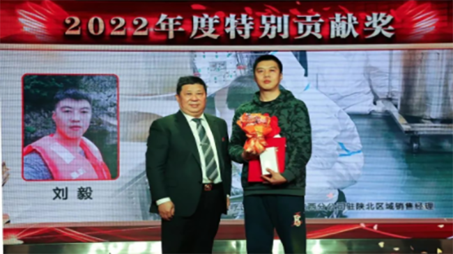 - 这个故事的开端是一封感谢信,2022年12月,一封来自广济堂的感谢信,让东华原的家人们认识到了一位勤奋敬业、奋勇抗疫的销售经理——刘毅。表扬信的背后凝聚着客户的片片真心,字里行间充满着对刘毅同志的肯定。两个月后,刘毅又受邀参加了“陕西广济堂医药集团股份有限公司2022年度总结表彰大会”,并荣获了一份“特别贡献奖”,会上,广济堂领导对先后两次全程参与广济堂中药防治汤剂熬制、和广济堂人一起携手抗疫、保障了煎药