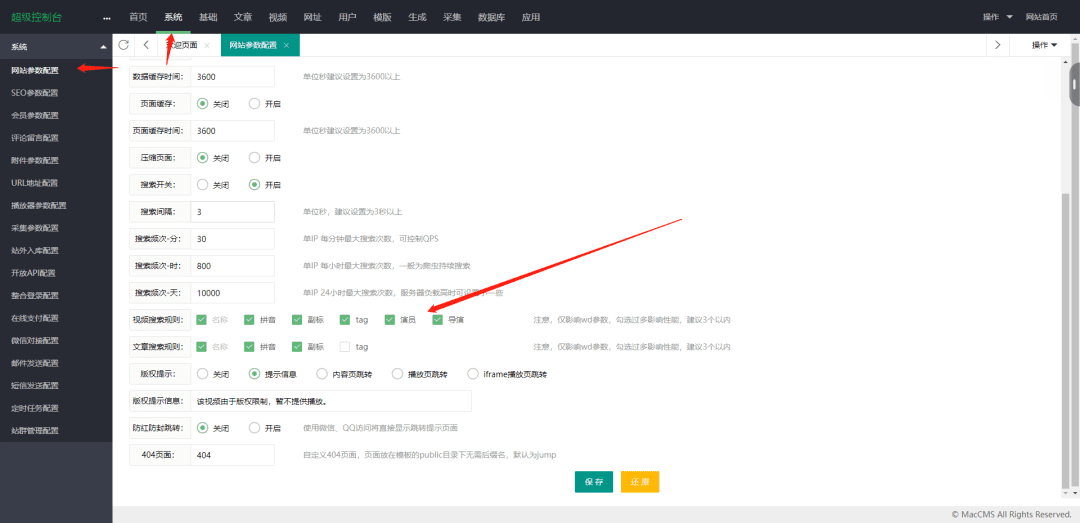 当我们苹果CMS爬取很多数据时,会发现有名字相同的视频,那我们如何处理,才会避免掉重名视频呢? 首先我们进入我们苹果CMS管理后台:进入【系统】-【采集参...