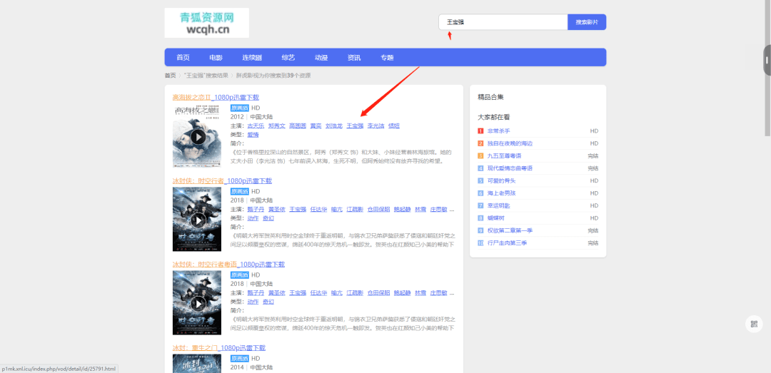 关于苹果cms搜索的问题:直接搜演员搜索不到影片信息(如下图)1,我们拿演员搜索王宝强后结果显示无相关视频。