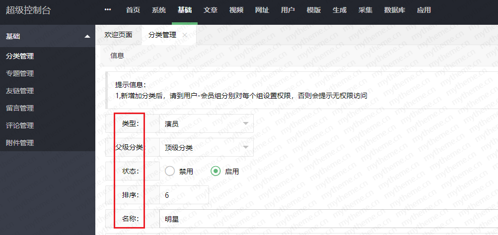 苹果cmsv10在采集明星资源进行绑定分类时发现没有可以绑定的分类,这是因为苹果cms系统默认没有明星这个分类栏目。所以需要我们手动添加一个“明星”的分