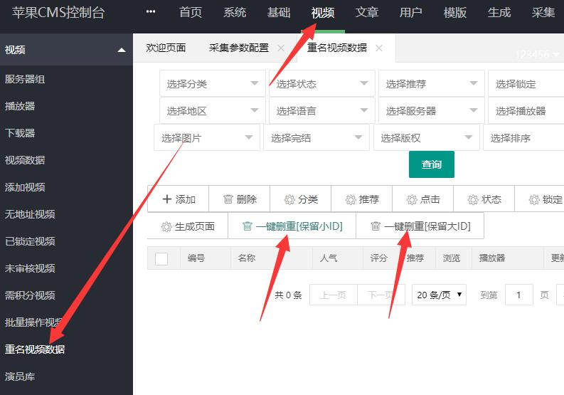 采集视频重复了解决方法首先你采集前,先设置一下采集参数,避免采集重复。程序后台->系统->采集参数配置