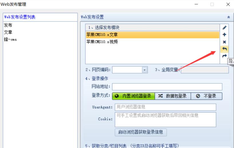 1、打开火车头软件,软件启动后点击这个“web发布配置”进入到web发布模块配置界面