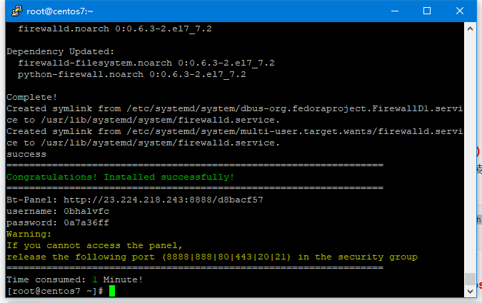 安装完成会有一个登录信息