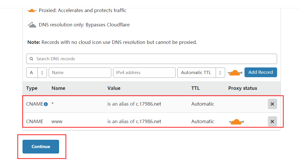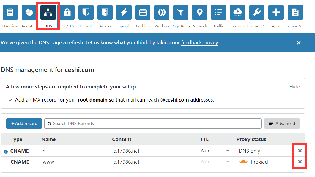 先进入DNS网站进行,对域名解析。(例子是以CF的DNS进行的。)