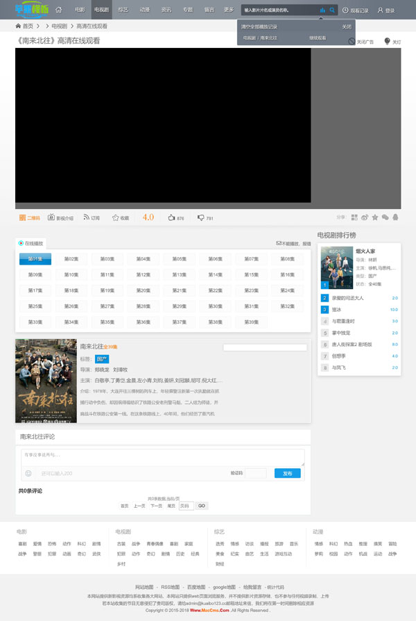 黑色影视网站自适应模板4号,是根据黑色2号、3号为母版,修改而来,因此与前面模板的相似度很高,区别只是细节,同样的兼顾pc、wap自适应访问。