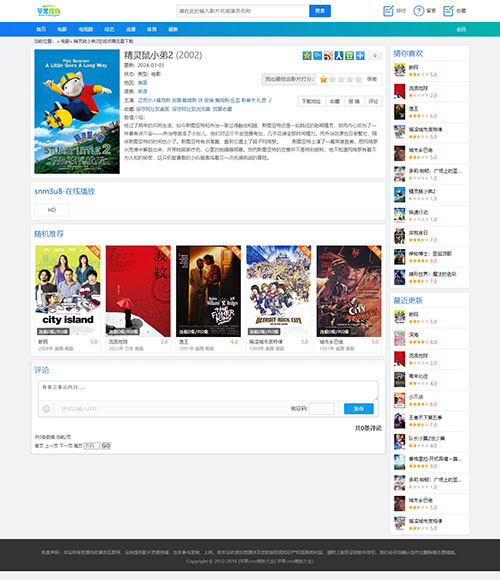首页为经典蓝色简约设计,带pc、wap两套模板文件夹,适合于影视网站。已针对原模板更新如下: