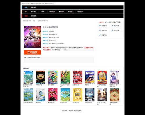 黑色影视网站自适应模板4号,是根据黑色2号、3号为母版,修改而来,因此与前面模板的相似度很高,区别只是细节,同样的兼顾pc、wap自适应访问。