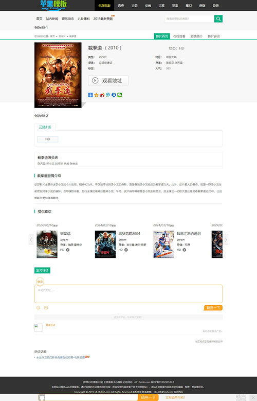 黑色影视网站自适应模板4号,是根据黑色2号、3号为母版,修改而来,因此与前面模板的相似度很高,区别只是细节,同样的兼顾pc、wap自适应访问。