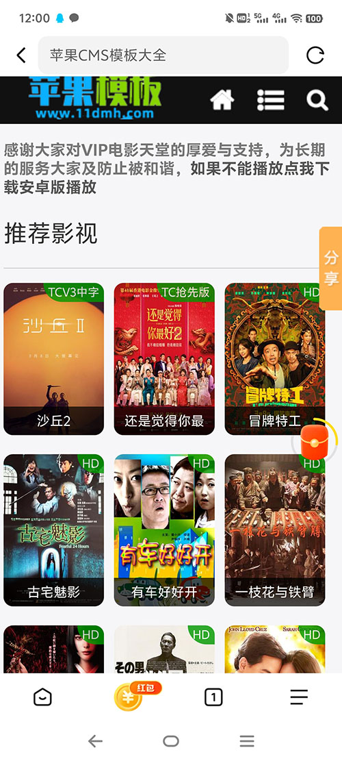 该模板是针对苹果cms8设计,虽然苹果cms8是一款老程序,但是作为影视系统的核心功能是齐全的,而且从SEO角度考虑,避免大多人选择的苹果cms10,可以尽量让你的页面及程
