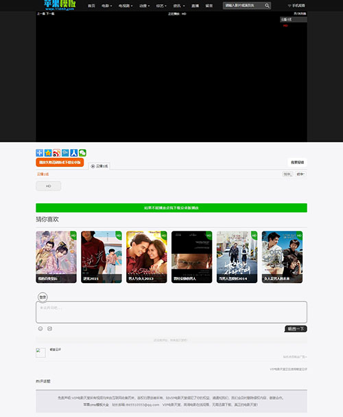 这款模板已经完美无错,删除了部分失效代码,模板包含影视模块和新闻模块,模板包含畅言的评论代码,不需要的可以删除,具体大家看演示截图就行。